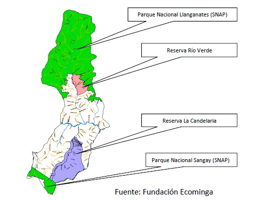 Ubicación de Reservas de la Fundación Ecominga en la Parroquia Río Verde
